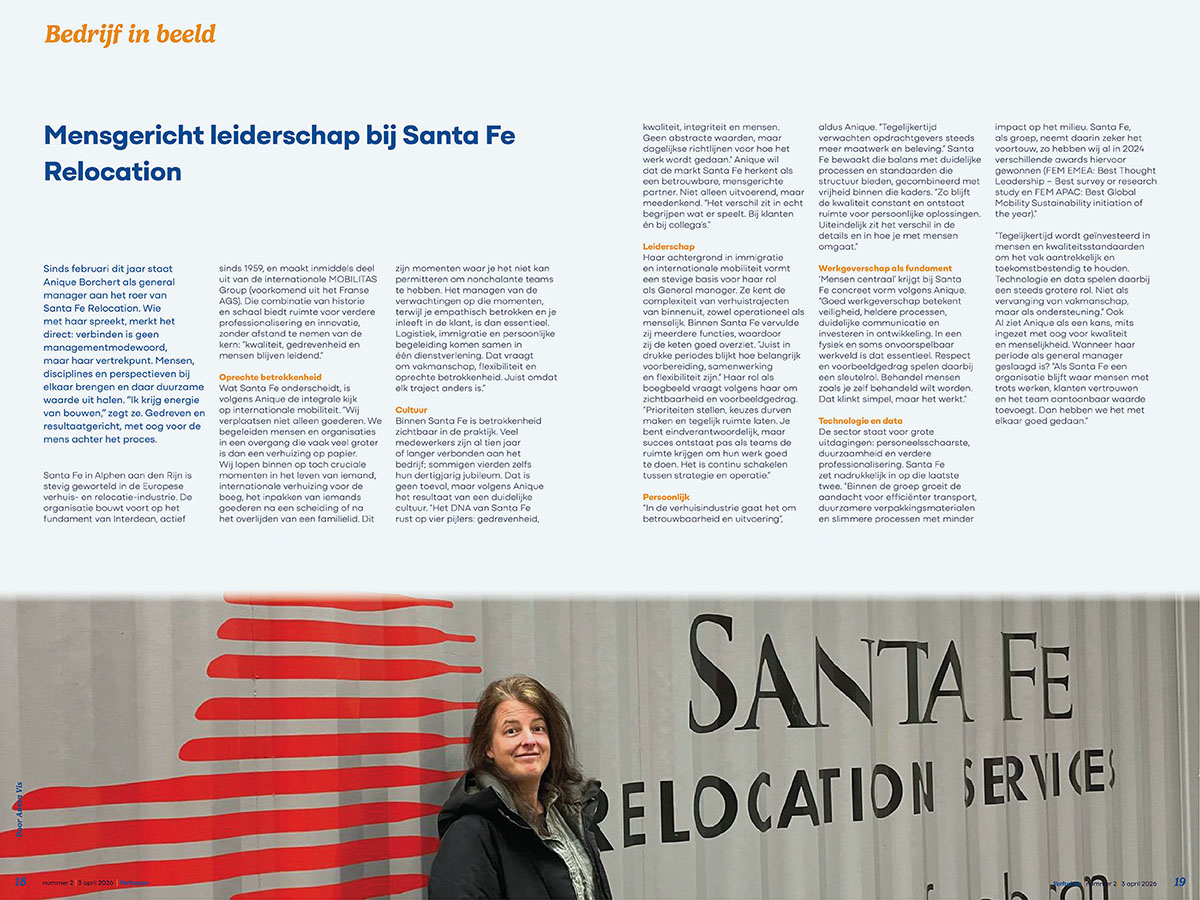 Anique Borchert featured in Verhuizen on leadership in international moving