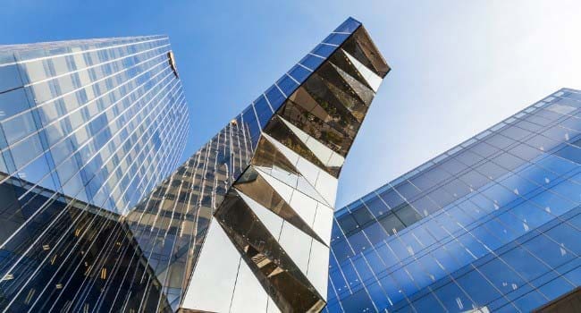 While you may not be granted access to this abstract office block in Barcelona, that’s not much of a problem – the best views are from the outside anyway. This building is basically three different buildings stuck together, including two tower blocks which come out of each other at right angles, all coated in a skin of glass. Five different types of glass were used here to give the building a range of reflectivity, colours and shades. The overall result is simply incredible.